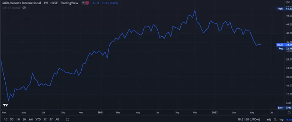 MGM Resort is the most renowned name on the Las Vegas Strip. It also runs a number of casinos across the globe, including several in Macau. In addition, its online gaming platform, Bet MGM, is among the most user-friendly on the web. It has enhanced its reputation and credibility throughout the global gambling community. Since the beginning, the stock price curve has been almost steep and straight until the epidemic. Their recovery after the epidemic has likewise been rapid.