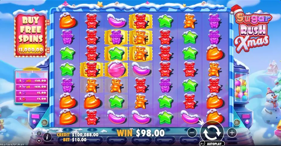 Our SummaryIf you enjoyed the original Sugar Rush, you’ll find this high-volatility, cluster-pays slot from Pragmatic Play instantly familiar, just dressed up in festive Christmas visuals and snowy effects. The real draw remains the addictive multiplier spots and satisfying tumble mechanic, though there are no new features or surprises beyond the holiday reskin. Sugar Rush Xmas looks great and runs smoothly on mobile, and adds a great holiday spin to the original for all of those who are fans.